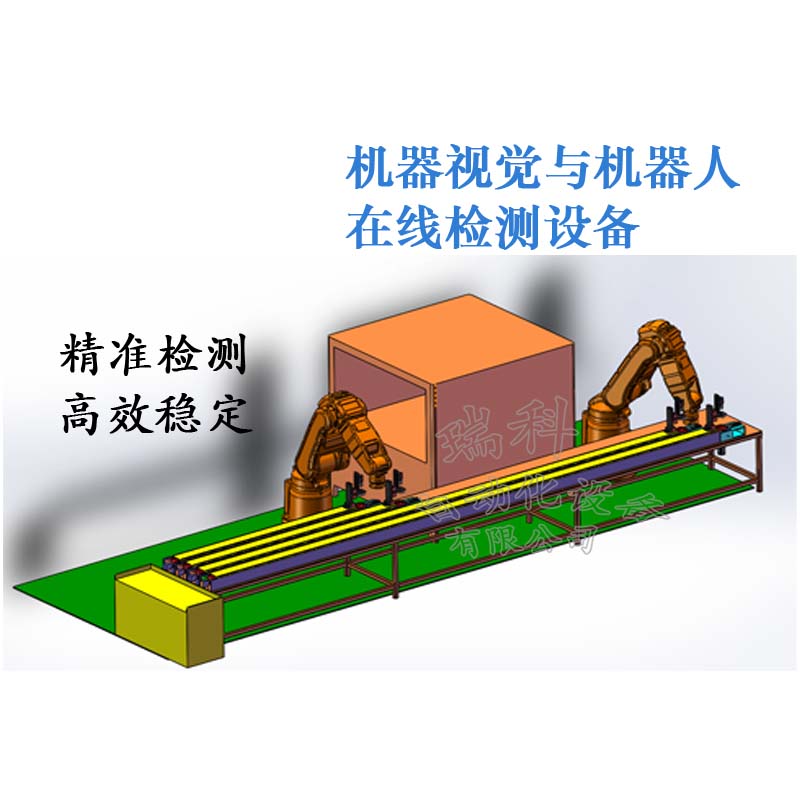 瑞科的機(jī)器視覺圖像處理系統(tǒng)與機(jī)器人組合即可在線對產(chǎn)品生產(chǎn)過程中產(chǎn)生的各種尺寸及表面問題進(jìn)行高速、精準(zhǔn)的檢測。