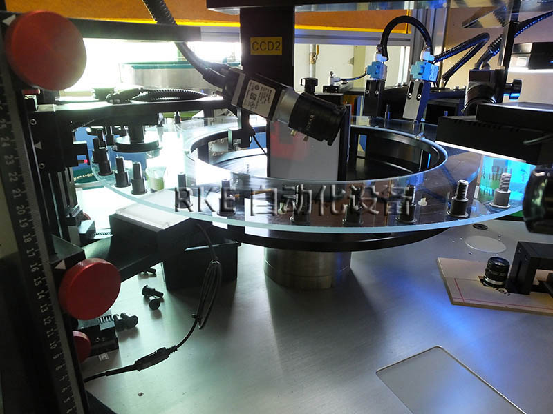 分度盤篩選設備檢測螺絲,把在玻璃盤上站立不穩的物件,懸掛起來進行檢測。檢測范圍廣,速度快,精度高